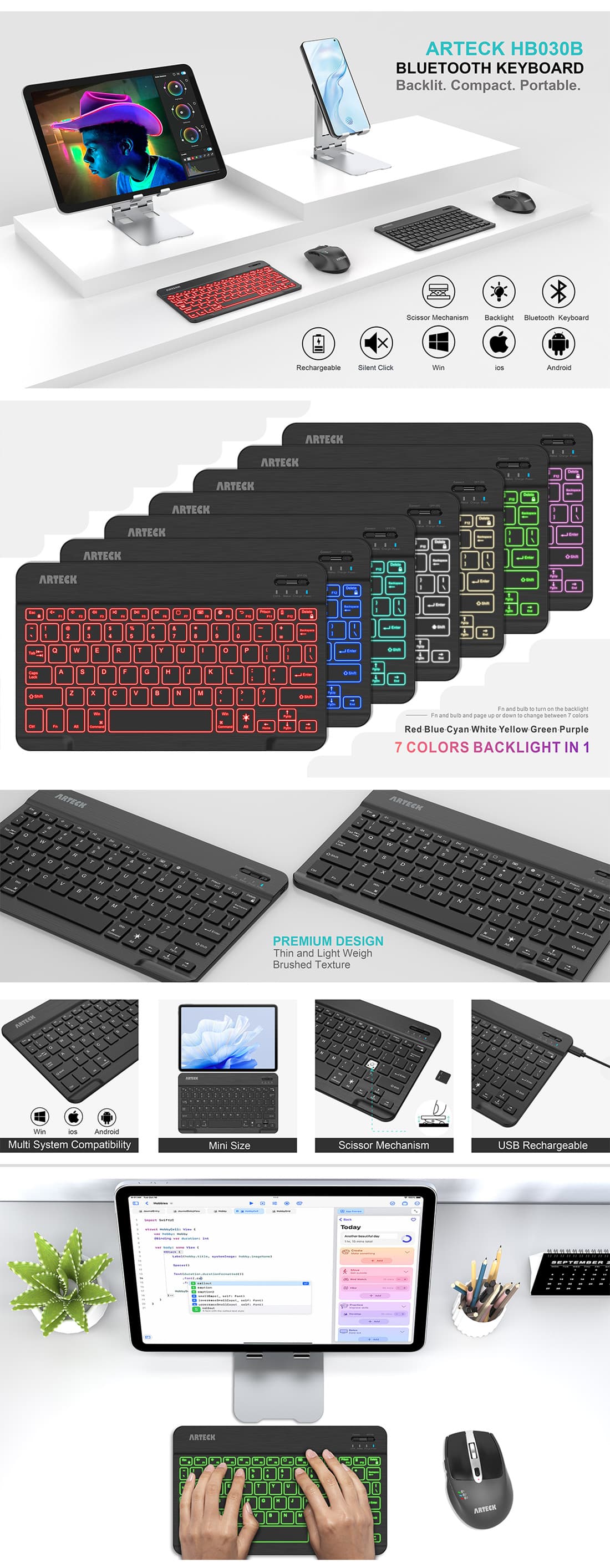 Foldable Keyboard - Arteck HB030B Universal Backlit 7-Colors